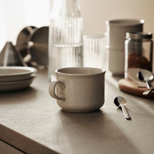Кубок DAGGASTER от IKEA — это стильный и экологичный аксессуар для кухни, выполненный из каменной керамики светло-бежевого цвета с характерными тёмными точками.