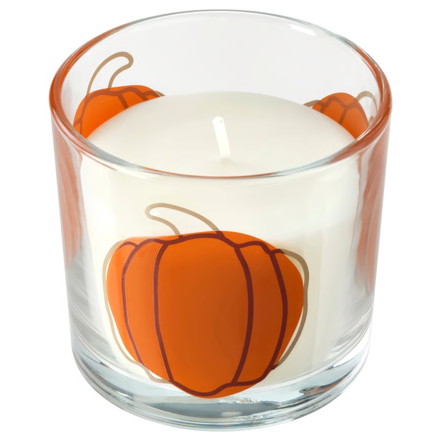 ИКЕА ХЕСТАГИЛЛЕ HOSTAGILLE Ароматическая свеча в стакане 20 ч, тыква/оранжевая