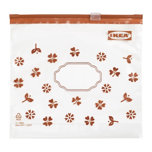 Мешки KÖSSEBÄR с застёжкой‑молнией — удобный и стильный способ хранить продукты на кухне. Изготовлены из прочного полиэтилена с аккуратным коричневым рисунком, они идеально подходят для свежих и замороженных продуктов, а также для мелких предметов в кухне или шкафу.