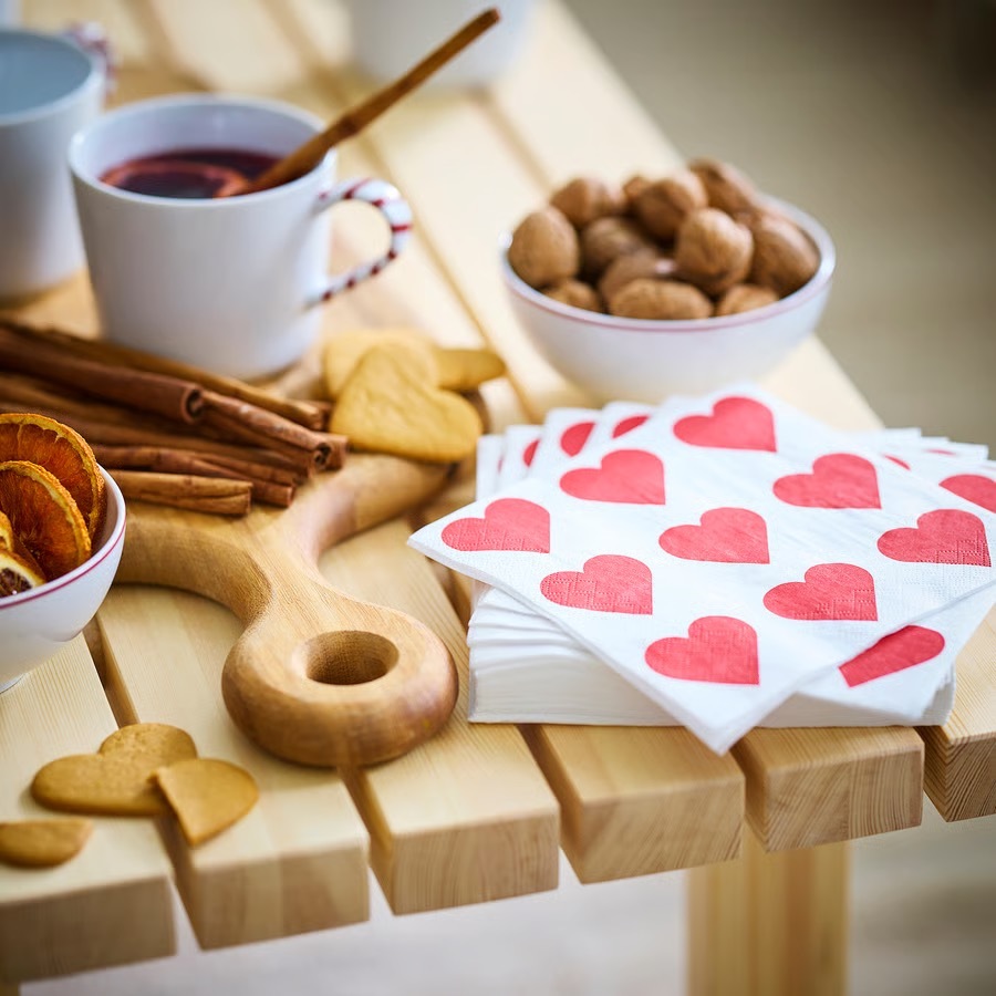 ИКЕА ВИНТЕРФИНТ VINTERFINT Салфетки бумажные 33х33 см, сердце/белые