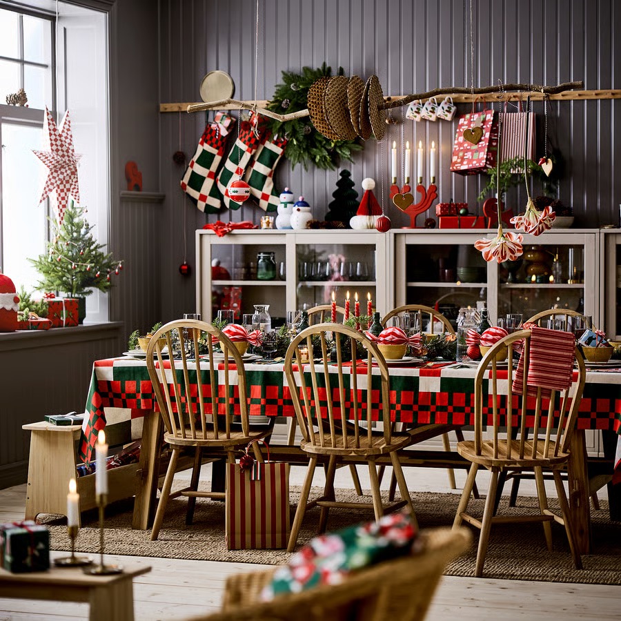 Скатерть в клетку, сочетание красного и зелёного цвета, изготовлена из 100 % хлопка — мягкая, приятная на ощупь и легко стирается. Она защищает поверхность стола и добавляет праздничный акцент интерьеру, отлично подходит для украшения стола в сезон торжеств.