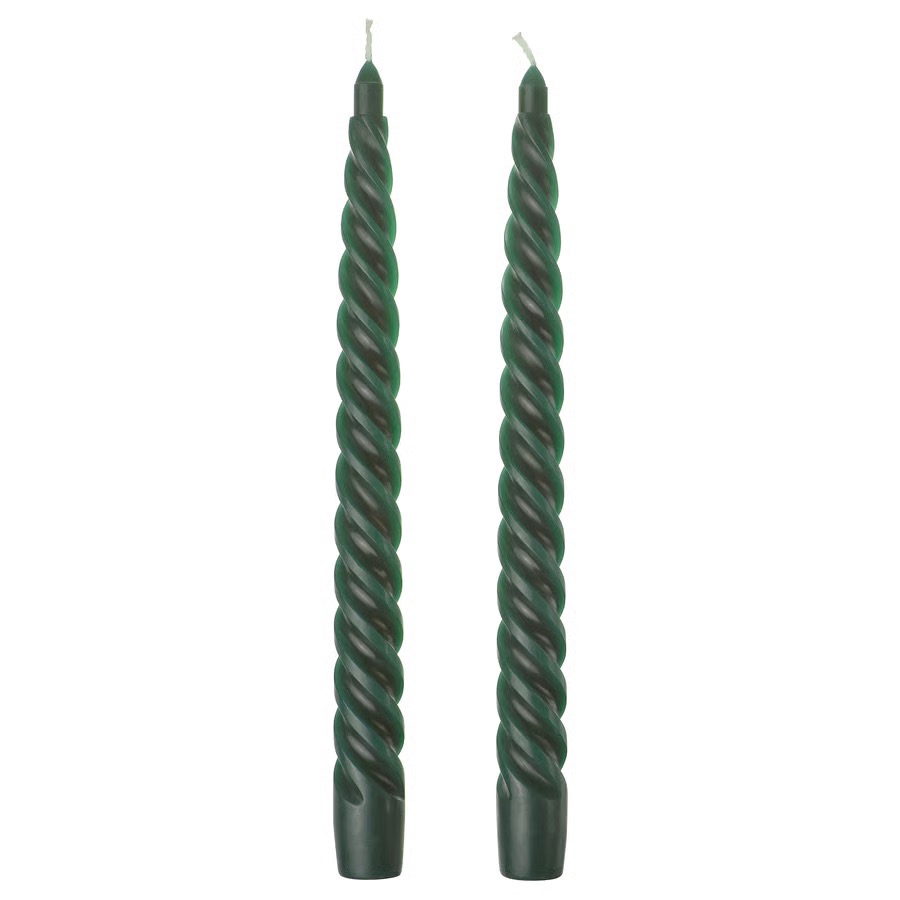 ИКЕА ВИНТЕРФИНТ VINTERFINT Свечи конусные 25 см 2 шт без запаха, спираль/зеленая